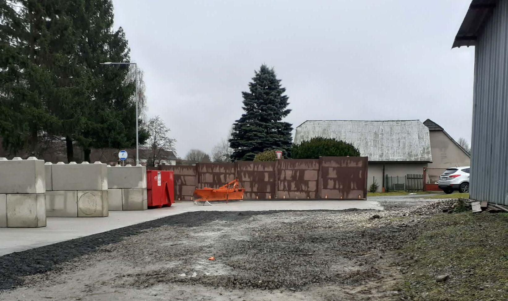 Kontejner na železný šrot je umístěn u montované haly v dolní části obce.
