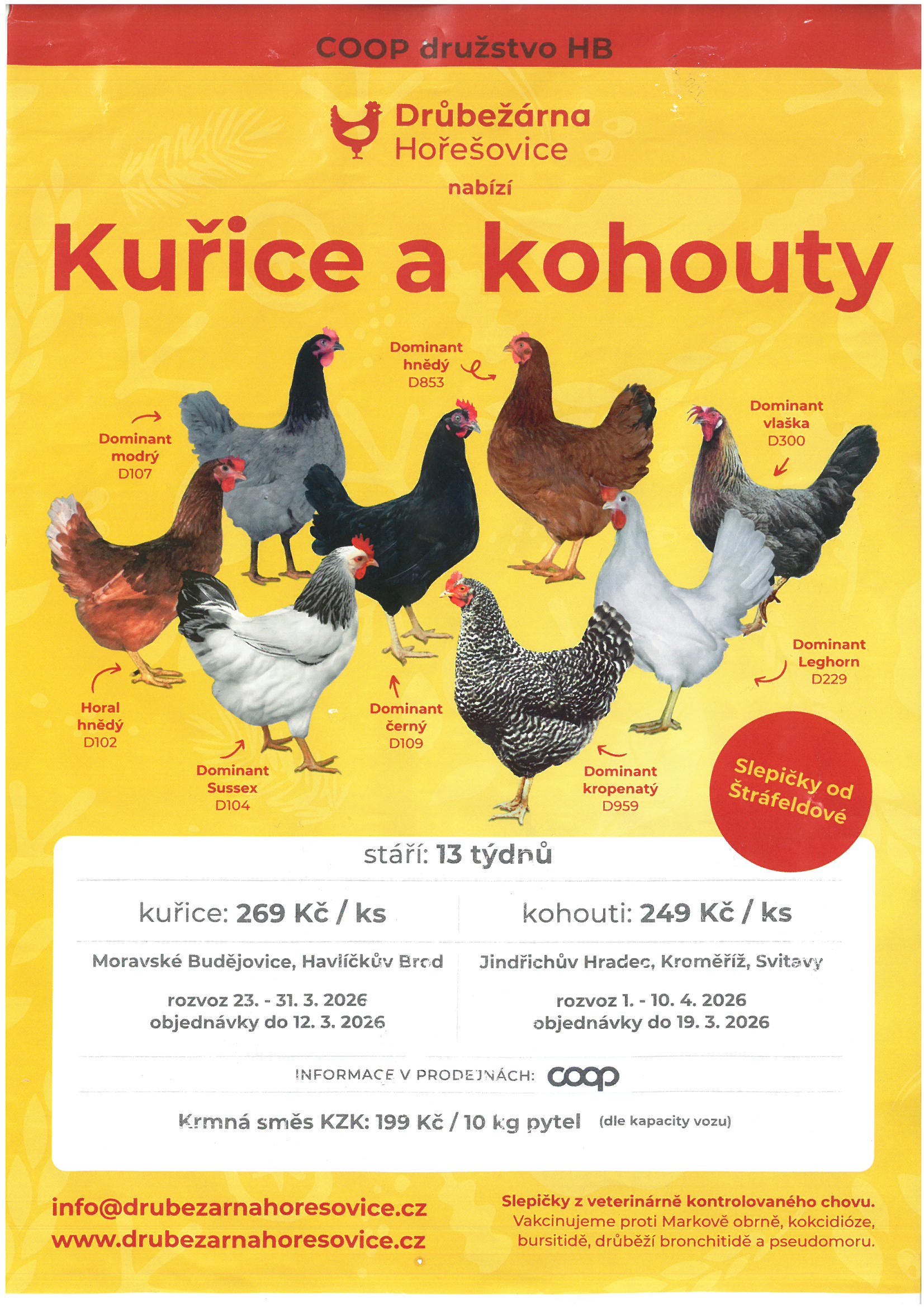 COOP Oudoleň - objednávka kuřic a kohoutů