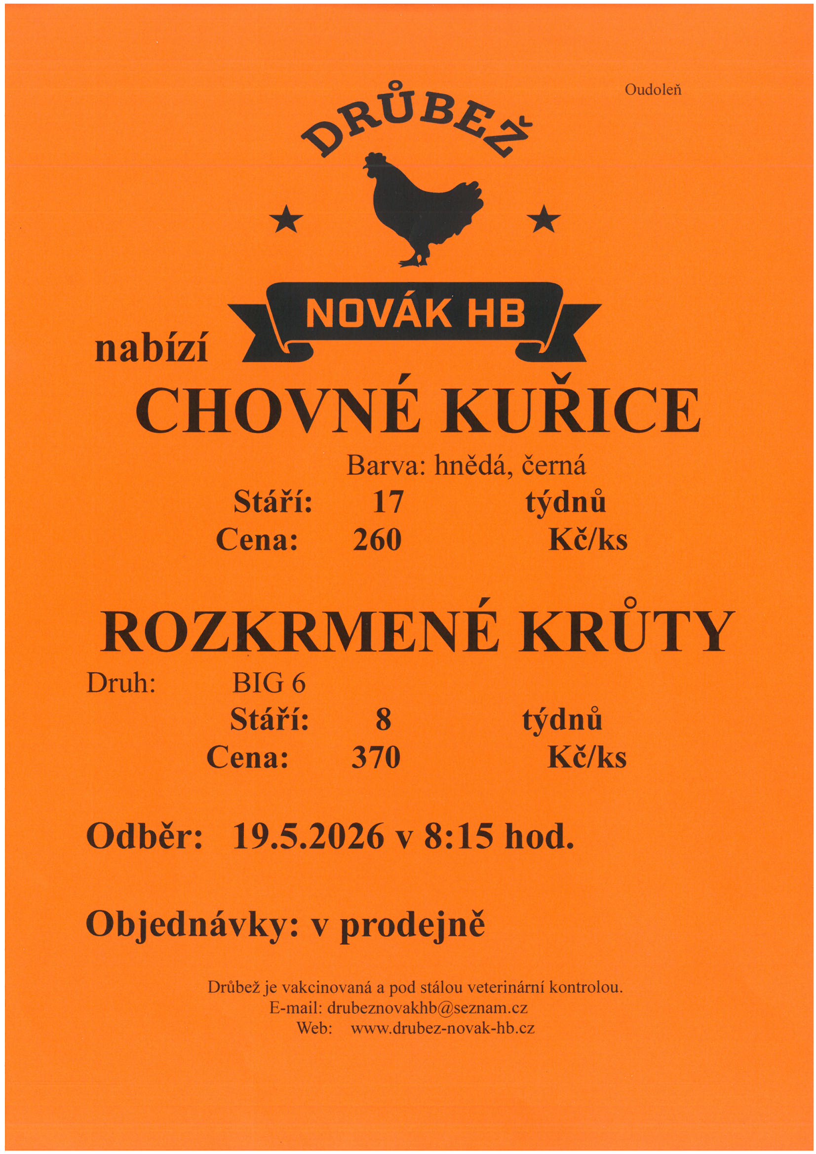 Drůbež Novák HB s. r. o. - prodej kuřic a rozkrmených krůt