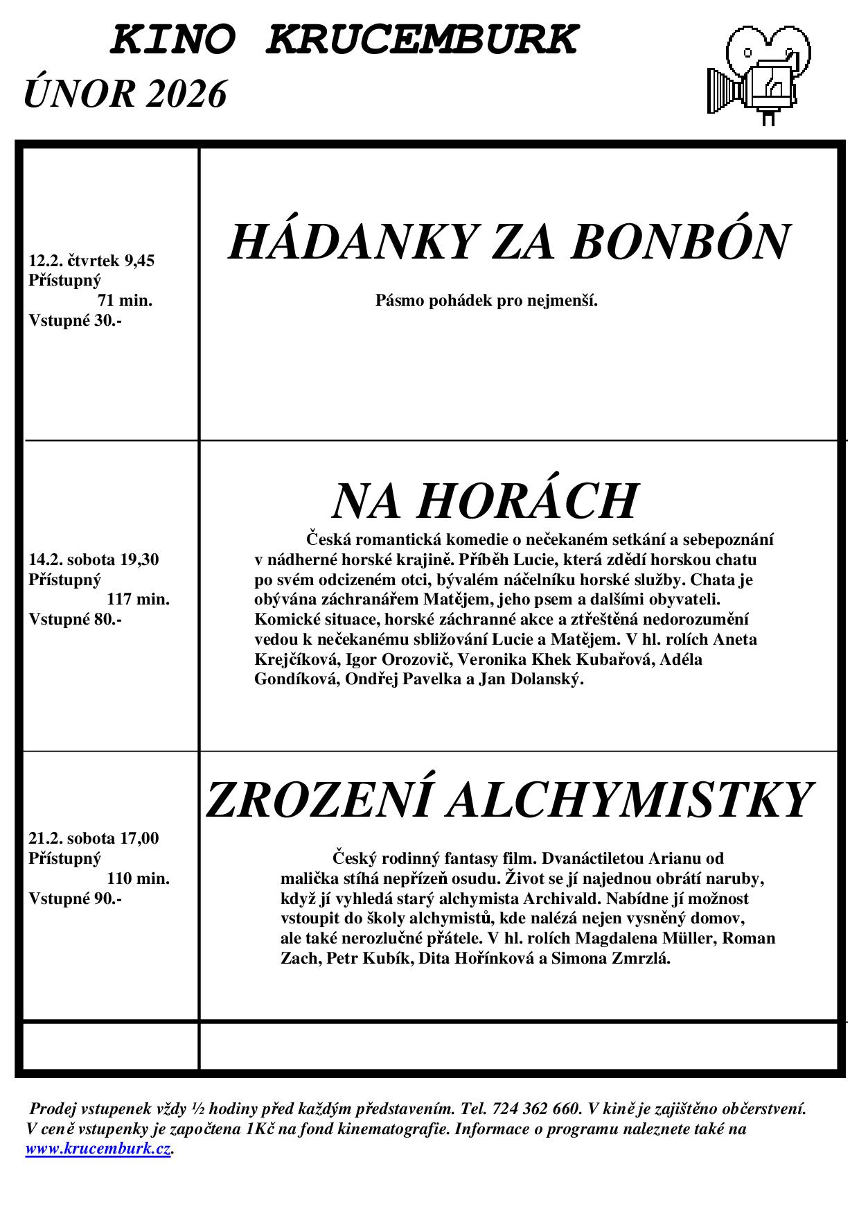 Kino Krucemburk - únor 2026