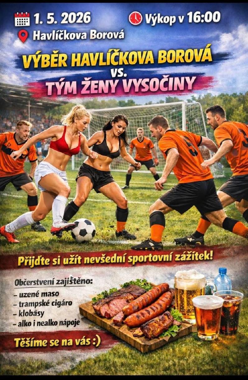 » Pozvánka do Havlíčkovy Borové na nevšední sportovní zážitek - fotbalový zápas VÝBĚR MUŽI HAVLÍČKOVA BOROVÁ vs. TÝM ŽENY VYSOČINY