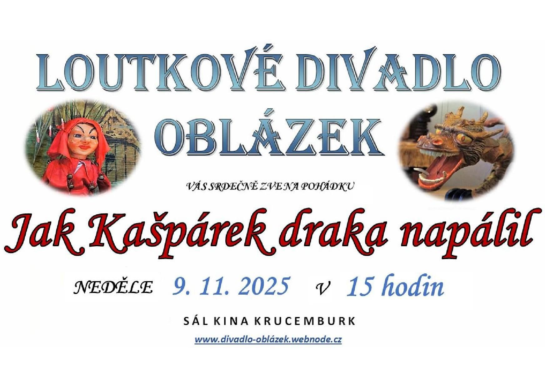 Pozvánka do Krucemburku na loutkovou pohádku "Jak Kašpárek draka napálil"
