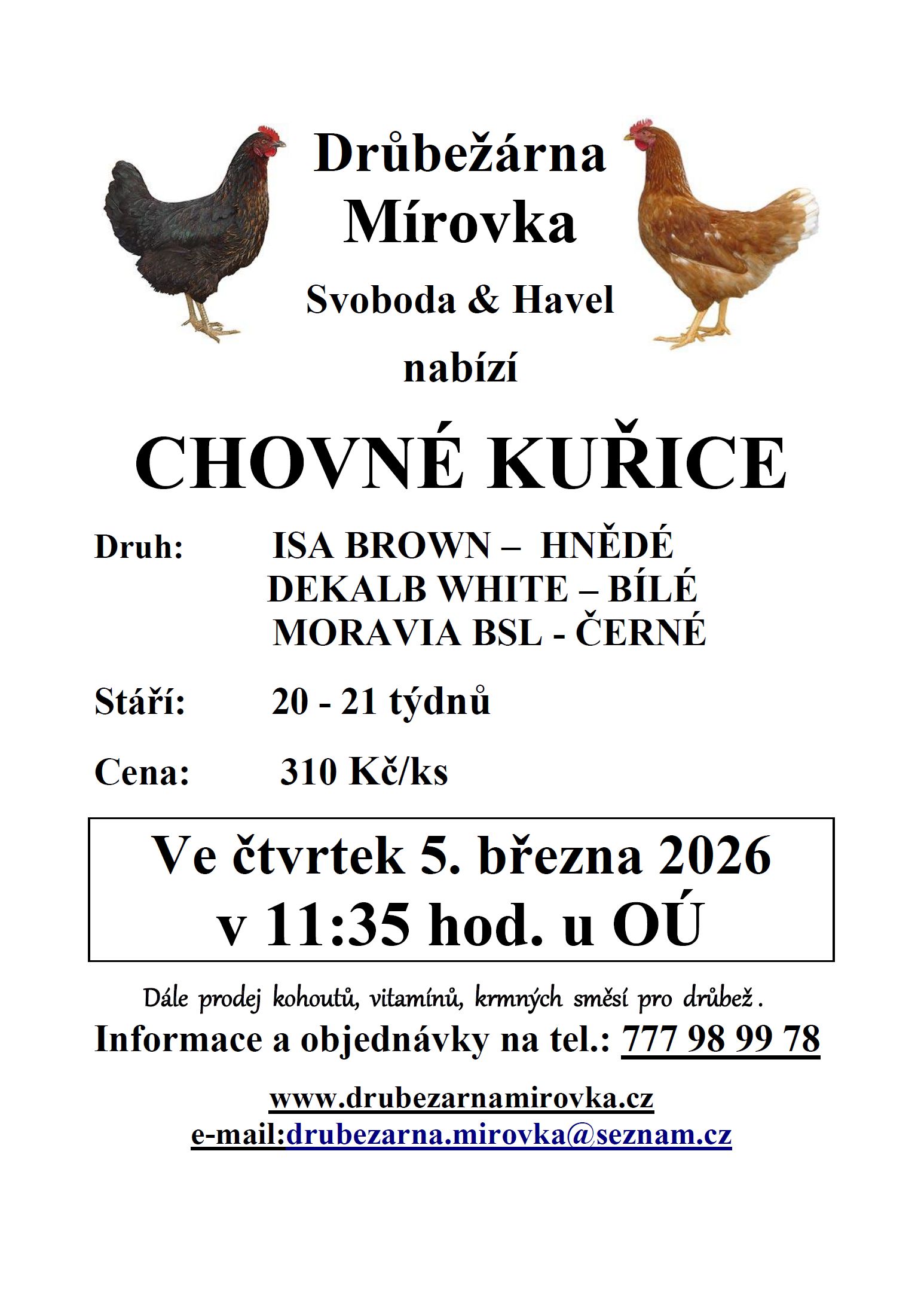 Drůbežárna Mírovka Svoboda & Havel - prodej kuřic