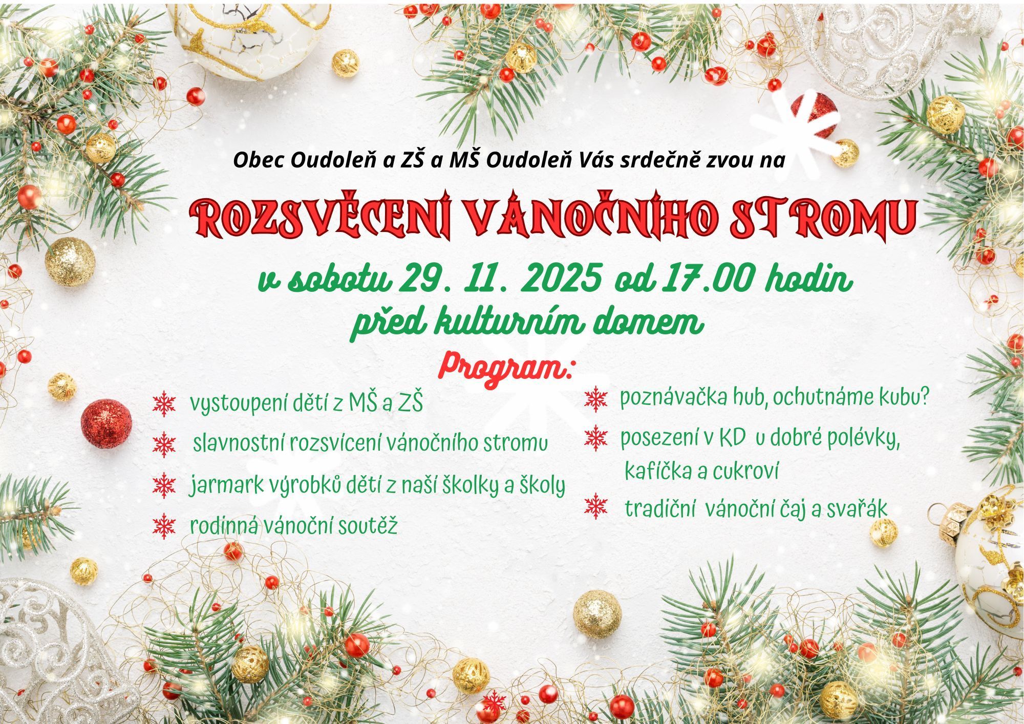 Pozvánka na Rozsvěcení vánočního stromku v sobotu 29. 11. 2025
