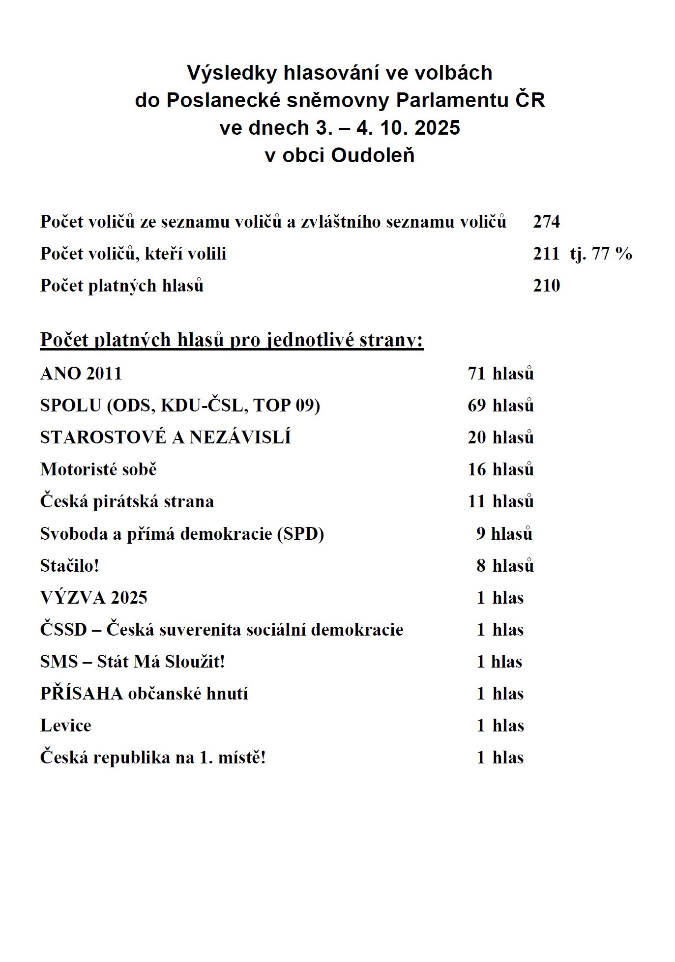Výsledky voleb do Poslanecké sněmovny Parlamentu ČR ve dnech 3. - 4. 10. 2025