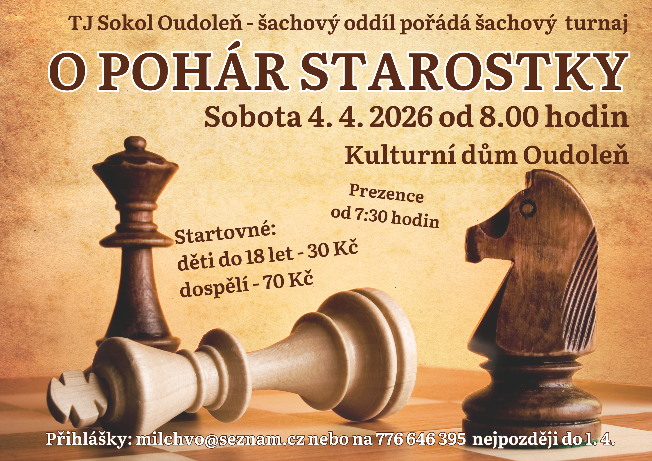 Přihlášky na šachový turnaj O POHÁR STAROSTKY do 1. 4.